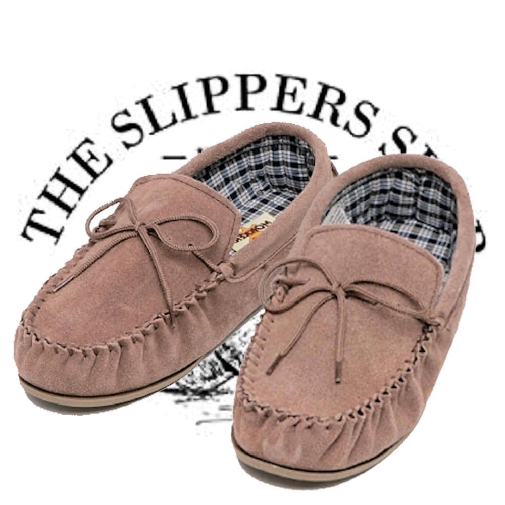 'BRUCE' Real Suede Leather Moccasins with Hard Wearing PVC Sole TAUPE