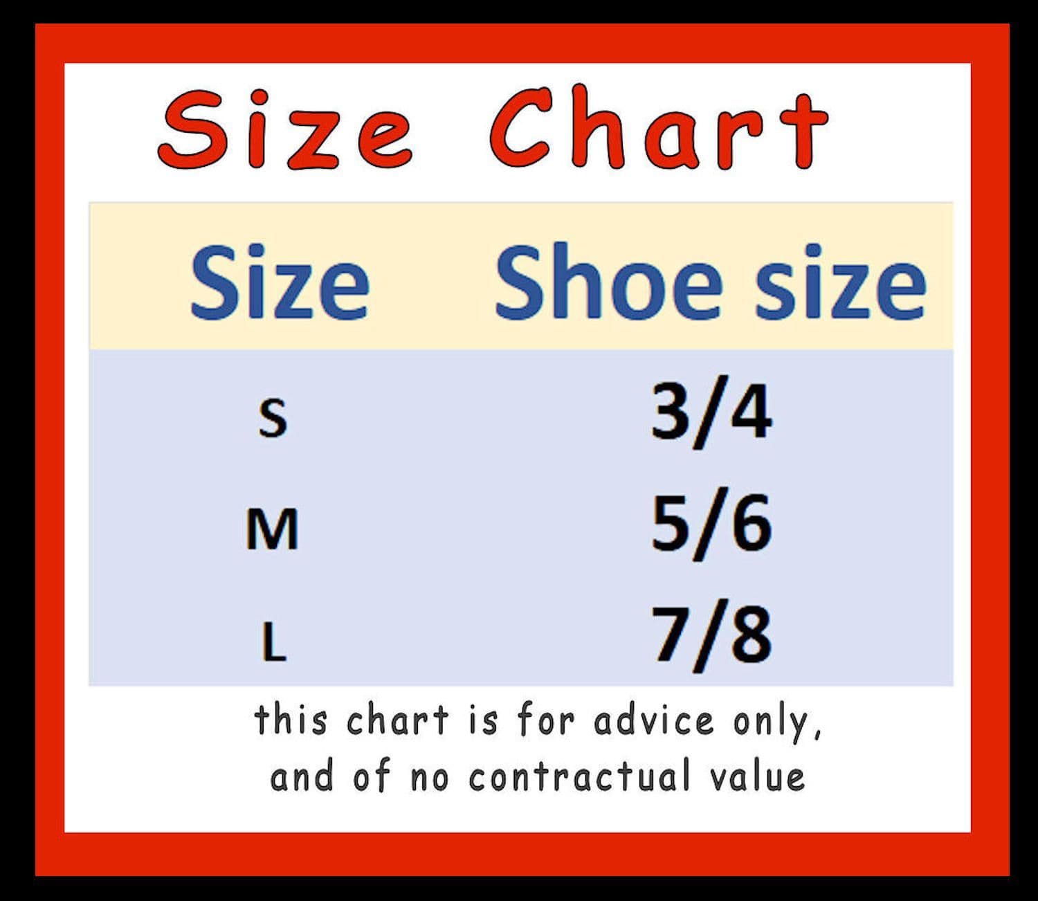 Sizes: SMALL (3/4) MEDIUM (5/6) LARGE (7/8)