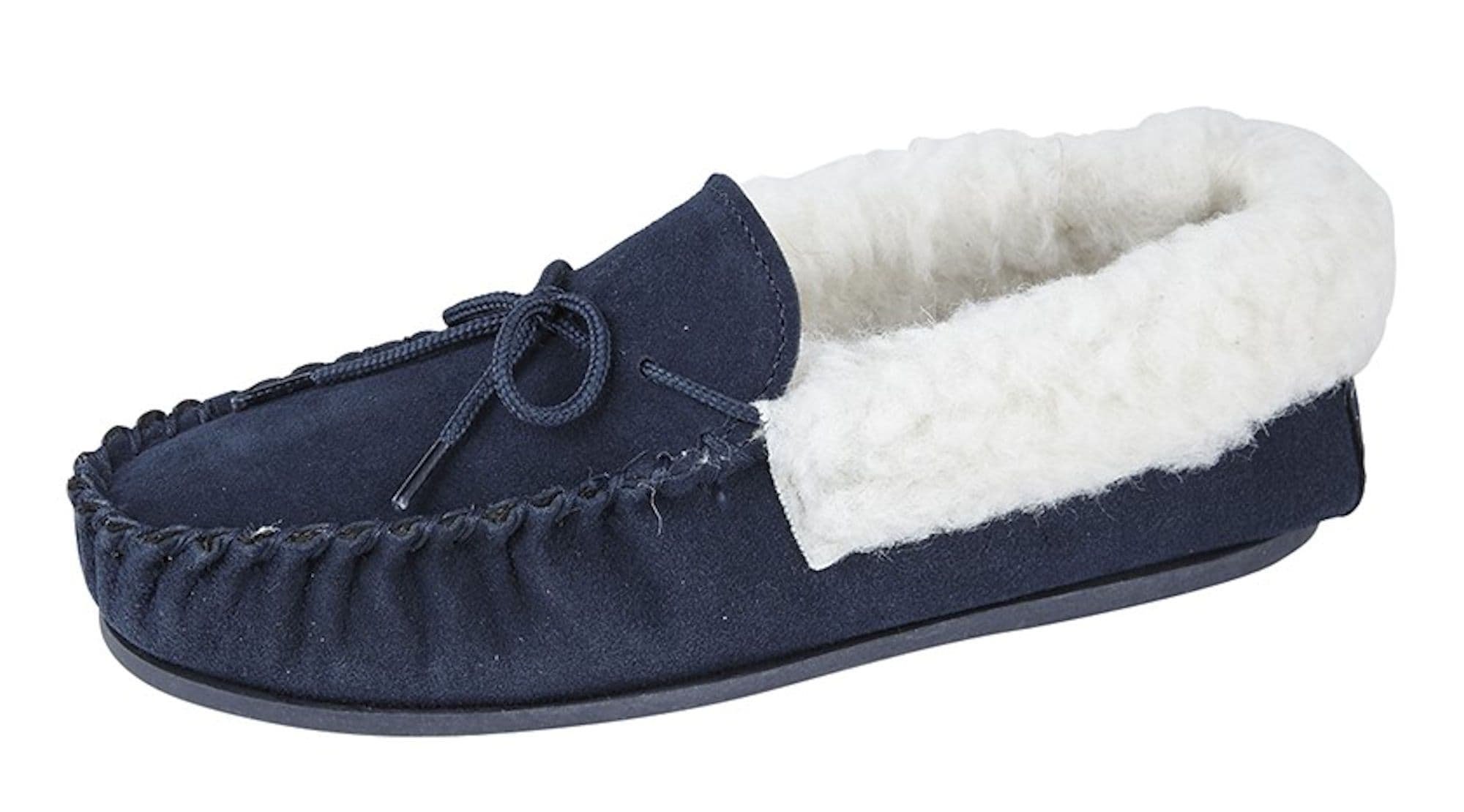 'EMILY' Real Suede Leather Moccasin with Hardwearing Sole NAVY