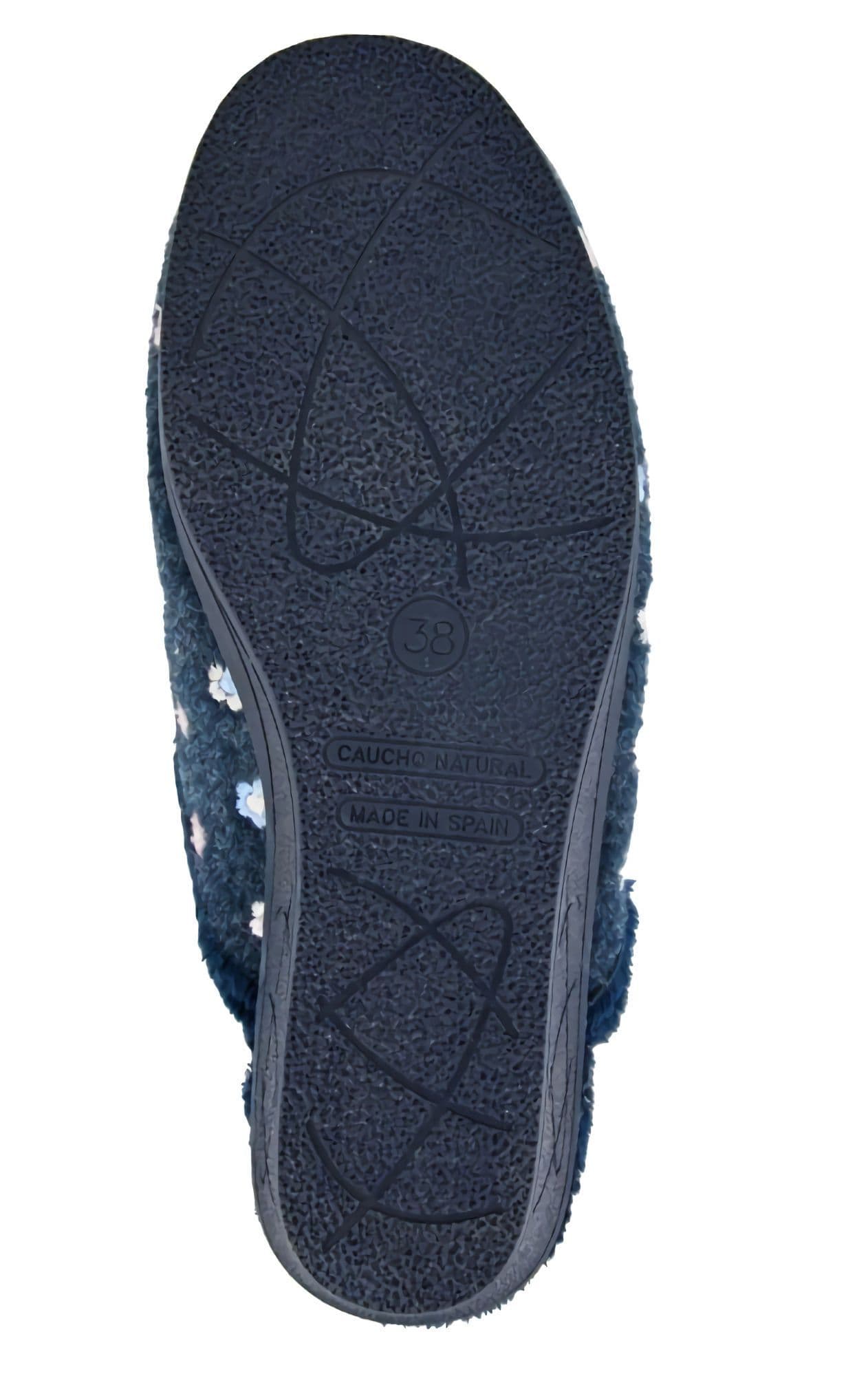 'JOSEPHINE' Ladies Embroidered Wedge Heel Mule Slippers NAVY FLORAL